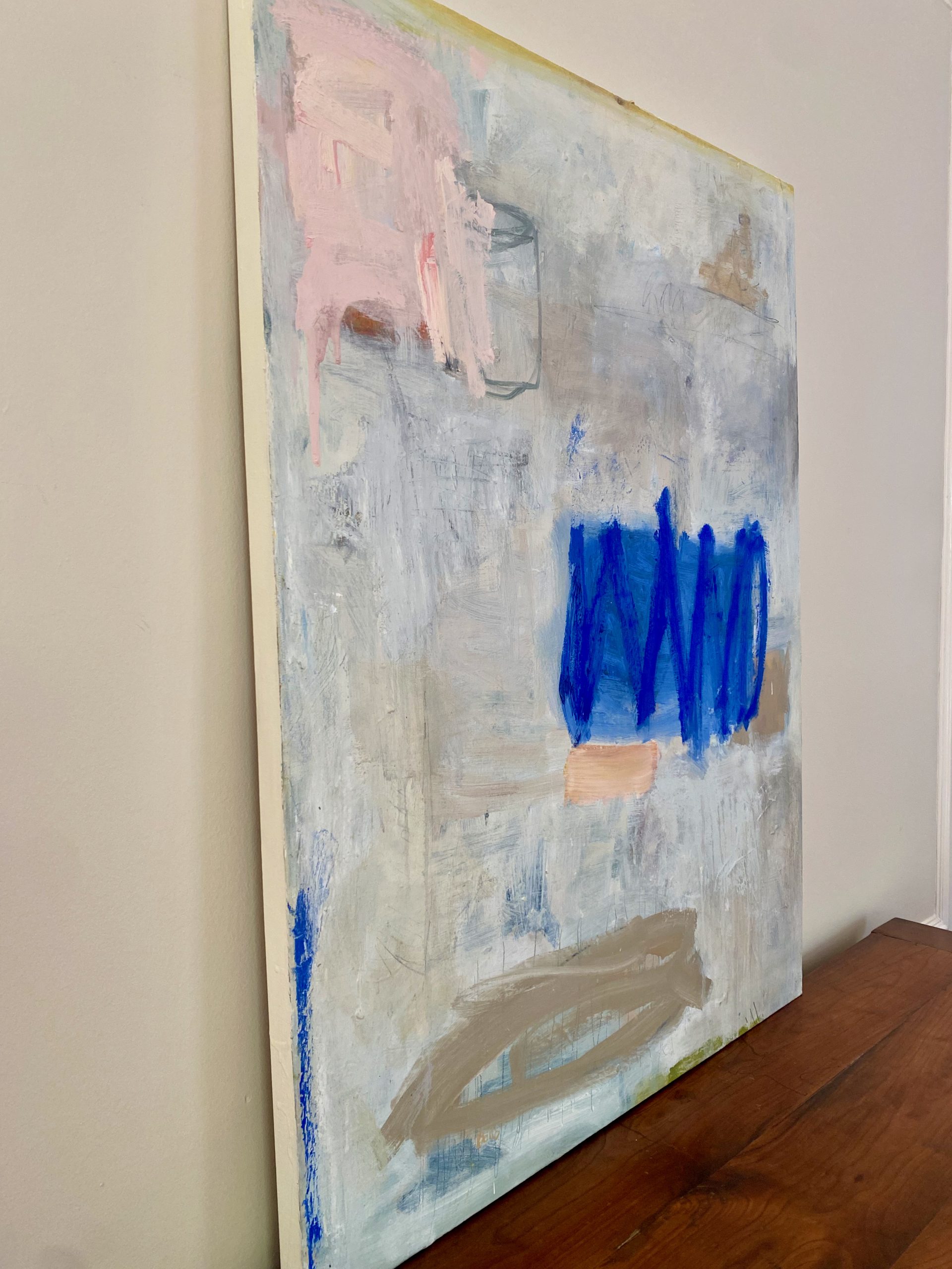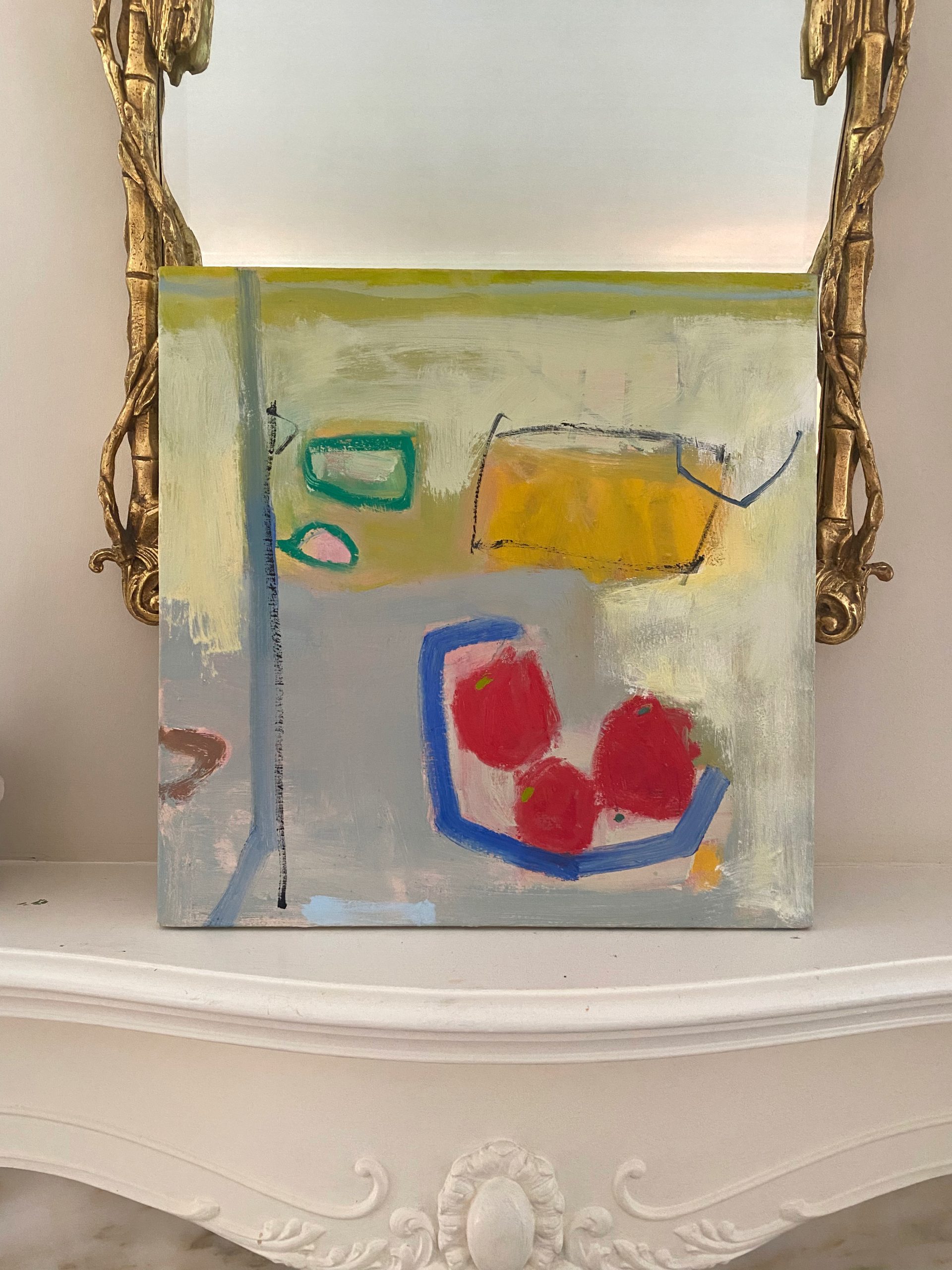 Katherine Bello is a contemporary abstract painter. Using playful mark-making and lush colour, she constructs her compositions through layers of thick paint and thin glazes.