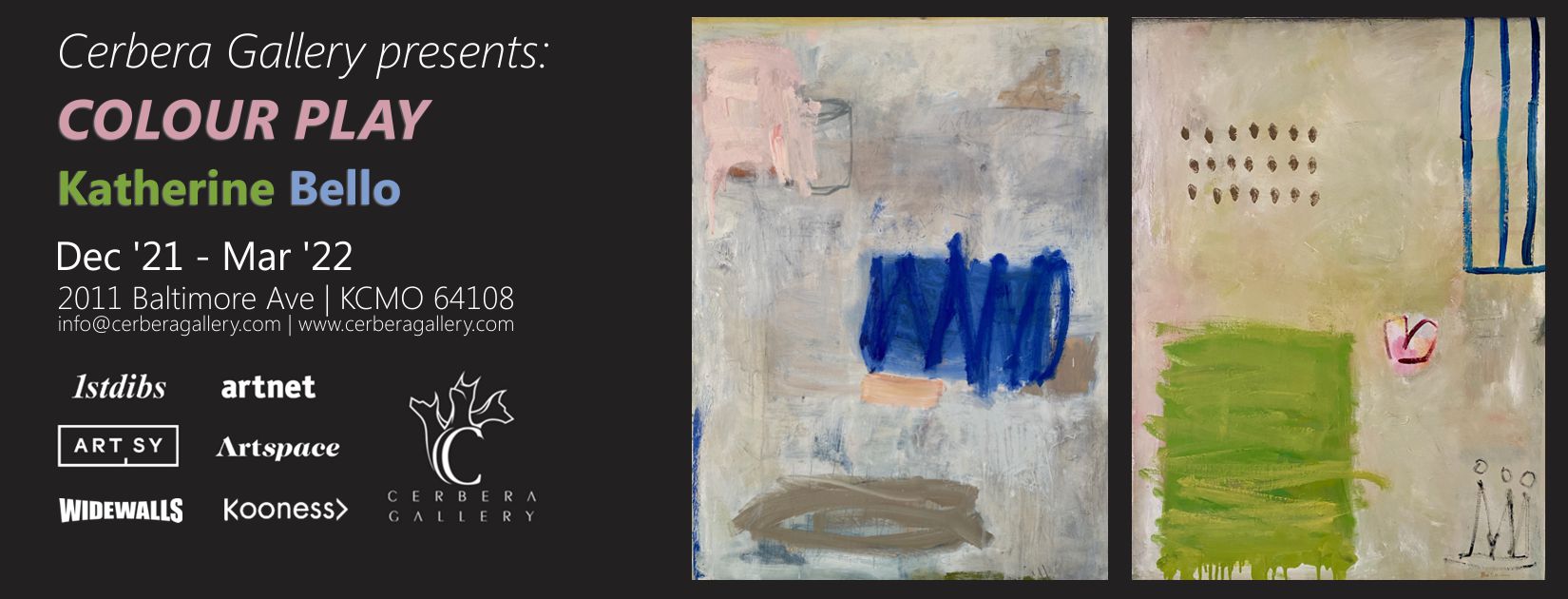 For all press inquires and group visits regarding Cerbera Gallery’s “COLOUR PLAY”, contact info@cerberagallery.com.