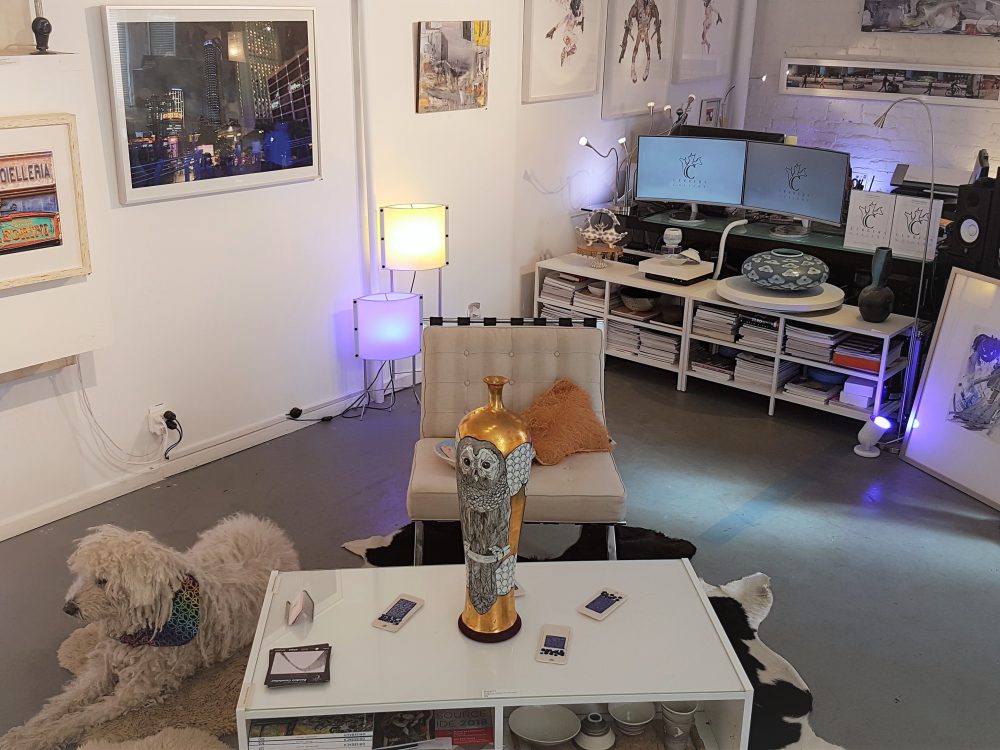 “Phil usually shares our gallery news on Cerbera’s official Facebook page. As many of you know, I am Cerbera Gallery’s Permanent Artist in Residence Canine, so make sure to say “HI” and give me a belly rub when you come in the next time.”