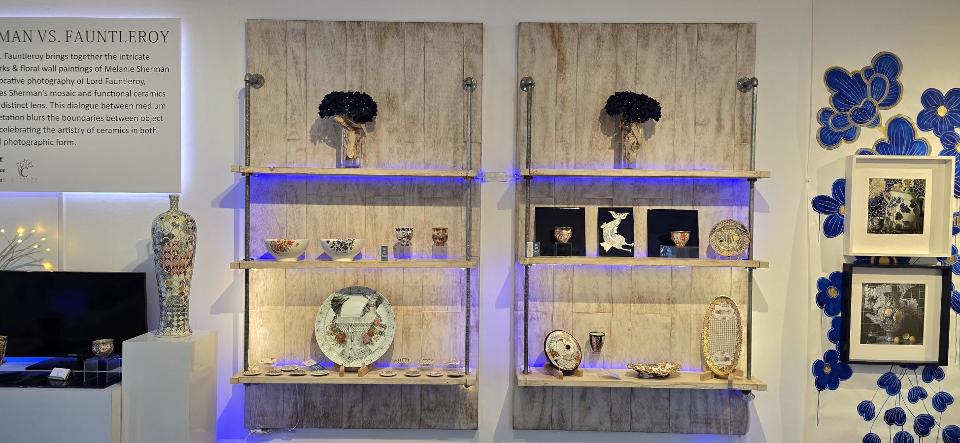 Sherman vs. Fauntleroy brings together the intricate ceramic works & floral wall paintings of Melanie Sherman with the evocative photography of Lord Fauntleroy, who captures Sherman’s mosaic and functional ceramics through his distinct lens. This dialogue between medium and interpretation blurs the boundaries between object and image, celebrating the artistry of ceramics in both physical and photographic form.